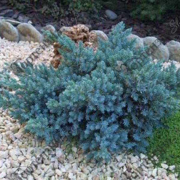 Можжевельник чешуйчатый "Блю Стар" - карликовый кустарник,высотой 0,6 м, диаметр кроны 1-1,5 м. Крона куполообразная широкая и плотная.Небольшие размеры кустарника компенсируются густотой хвои и близким расположением ветвей, они образуют пышную крону. Растет очень медленно, скорость роста не превышает 8 см в год .Хвоя чешуйчатая,игловидная серебристо-голубого цвета. Светолюбив,морозостоек.