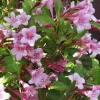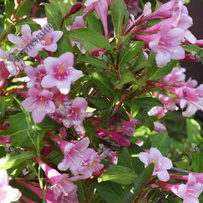Вейгела Пинк Принцесс (Weigela florida Pink Princess) - раскидистый кустарник высотой до 1,5м и такой же шириной. Годовой прирост 20 см. Цветет обильно в мае-июне светло-розовыми колокольчатыми цветками, собранными в соцветия по 3-5 шт. Повторное цветение в августе-сентябре. Листья зеленые, овальные, заостренные. Любит солнечные места, плодородные дренированные почвы.
