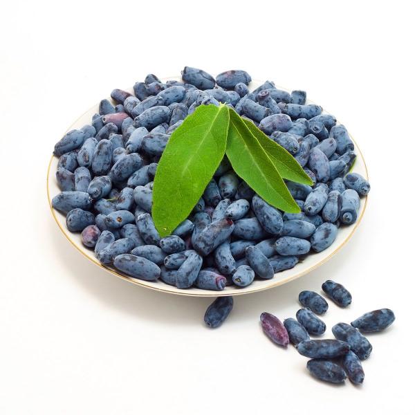 Жимолость - плодово-ягодный куст с  густой округлой кроной высотой до 1,5 м. Листья небольшие, овальные, зеленые. Ягоды крупные, удлиненные, синие с восковым налетом, поспевают в конце июня, мякоть плотная, кисло-сладкая с небольшой горчинкой.Самобесплодная, нужен опылитель. Не осыпается. Транспортабельность хорошая. Устойчива к вредителям и болезням. Почвы плодородные, увлажненные без застоя воды, можно слегка подкисленные.  Морозостойкость -40С. Сорта в ассортименте.
