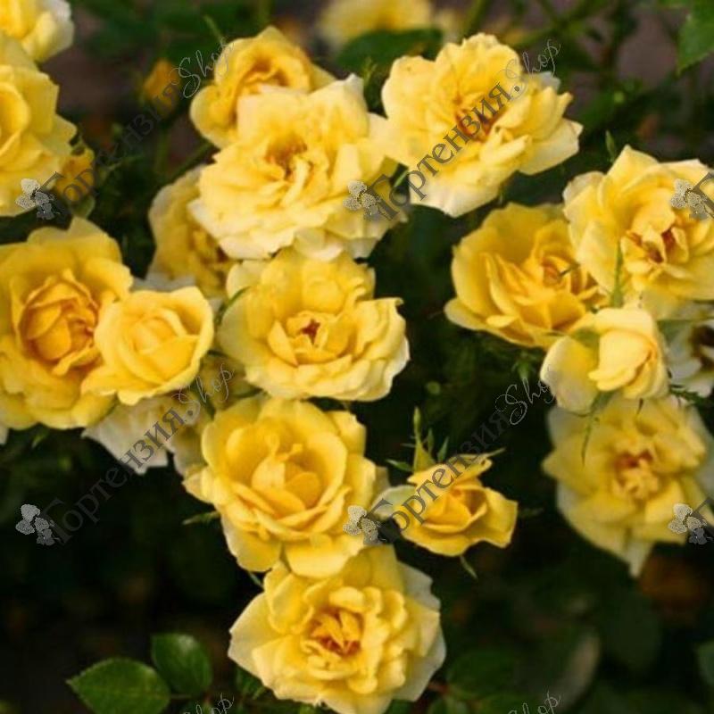 Роза миниатюрная (Rosa) Yellow Fairy - куст открытый, 70-80 см высотой, красивой формы, цветки диаметром 3-4 см, полумахровые (9-15 лепестков). Сразу после распускания бутона цветок ярко – желтого цвета, а через несколько дней выгорает, становясь бледно лимонного или даже кремового цвета. Сорт цветет обильно, покрывая весь куст, и практически непрерывно, так как сразу после высыхания отцветшего цветка, на его месте расцветает новый. Цветение в соцветиях, обильное, почти непрерывное. Листва мелкая, темно-зеленая.