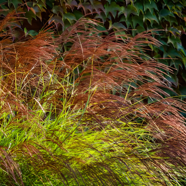 Мискантус китайский Фернер Остен многолетнее злаковое растение  высотой до 2 м. Листья линейные, длинные, шершавые зеленые, осенью желтые, шириной до 1,5 см. Соцветия темно красные, распустившиеся колоски серебристо-розовые. Цветет с сентября по октябрь. Стебли прямостоящие. Место посадки солнечное. Почвы плодородные рыхлые без застоя воды. Высаживают в прибрежных зонах, миксбордерах, рокарии одиночно и группами, используется во флористике. Морозостойкость до 34С