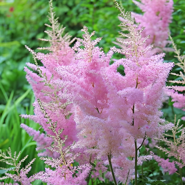 Астильба Арендса Катлея (Astilbe arendsii 'Cattleya') - многолетнее цветущее растение, выотой до 70 см. Листья темно зеленые, дважды или трижды перисто-рассеченные. Цветет с июля по август мелкими, нежно- розовыми цветами, объединенными в крупную метелку. Почвы предпочитает нейтральные, плодородные увлажненные. Используется в  альпинарии, рокарии, искуственных мини-водоемах, миксбордерах, бордюрах. Морозостойкость -34С.