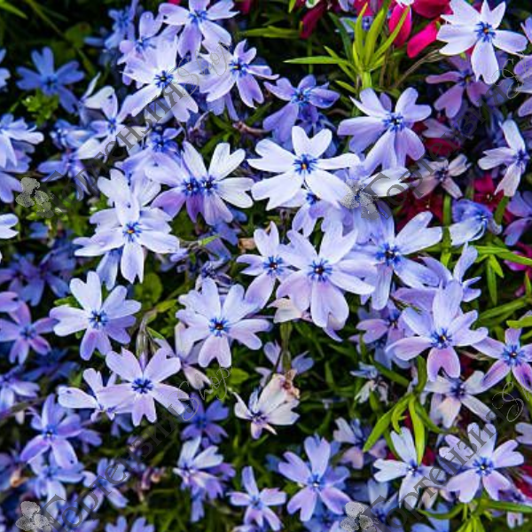 Флокс шиловидный голубой' (Phlox subulata 'Blue')-относится к вечнозеленым растениям, он является стелющимся сортом, поэтому на участке образует настоящий живой ковер. Длина листьев всего 2 см, они маленькие и густо покрывают стебли. Цветы звездчатые, простые 2-2,5 см. голубого цвета. Период цветения длится с мая до июня. Но осенью при благоприятных условиях происходит повторное цветение.Лучше чувствует себя на открытых пространствах под солнечными лучами в сухой рыхлой почве с хорошим дренажом и низкой концентрацией гумуса. Растение не выносит обильного увлажнения. Используют флокс чаще всего для украшения рокариев и бордюров как почвопокровное растение.