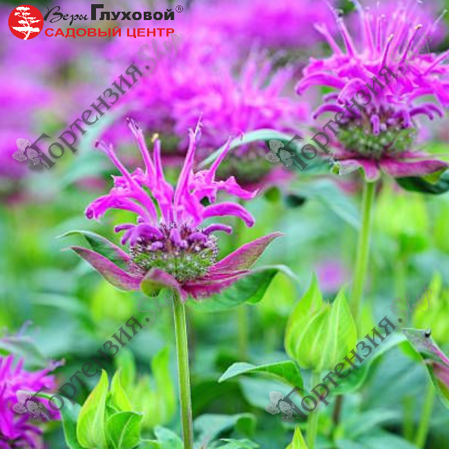 Монарда 'Скорпион' корневищное многолетнее растение. Высота 120 см, листья пальчато-рассечённые,зеленые. Цветки двухцветные, сиренево-розовые, собраны в колосовидные соцветия, цветут с июня по август. Морозостойкость -34С. Почвы предпочитает дренированные, кислые. Используется в миксбордерах, групповых  посадках,  в альпийских горках, бордюрной посадке и на срезку.