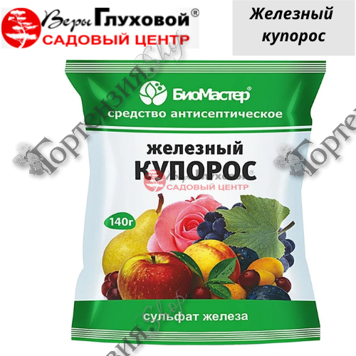 Железный купорос, 140 г Контактный фунгицид широкого спектра действия. Универсальное удобрение для растений. Применяется для дезинфекционной обработки от плесени, гнилей и грибных заболеваний любых деревянных конструкций в овощехранилищах, парниках, гаражах, банях и в целом деревянных строений. Антисептик используется для приготовления минеральных красок, грунтов под окраску, чернил и черной краски. Является идеальными средством для уничтожения запаха и дезинфекции - устраняет неприятных запахи из выгребных ям, летних туалетов. Идеальное средство для удобрения и подкормки растений: газона, цветочных культур, декоративных, плодово-ягодных культур и других растений, также комнатных растений, с целью профилактики и лечения болезней. Средство от грибковых болезней, мхов, лишайников.